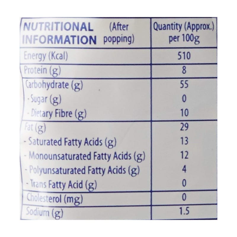 Corn, Edible Vegetable Oil, Seasoning Mix (Salt, Spices & Condiments, Flavoring Substances), Antioxidant (INS 320).