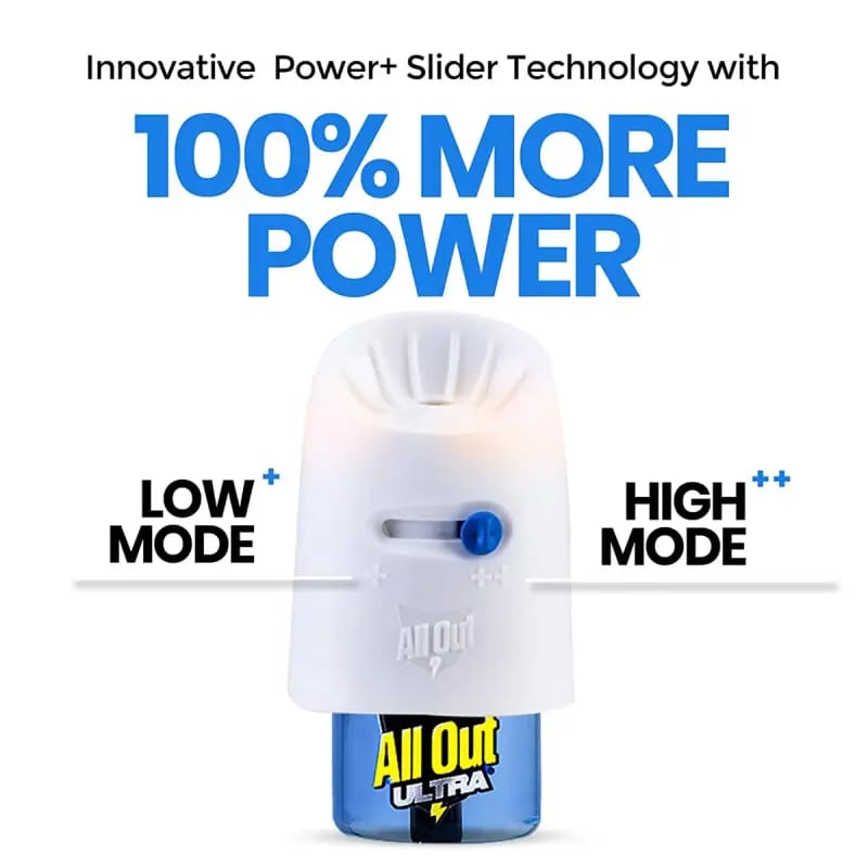 The All Out Ultra Power+ Slider Machine with Refill is designed to provide fast and effective protection from mosquitoes. Featuring the advanced Power+ technology and a customizable slider, it lets you adjust the intensity as per your need, offering reliable defense against even the toughest mosquitoes.