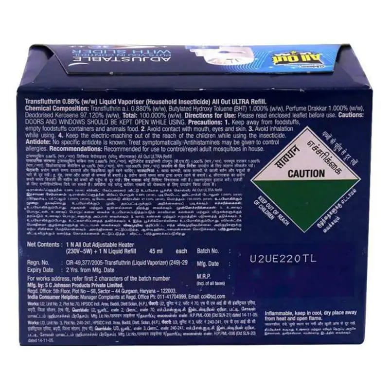 Pack Includes: 1 x All Out Ultra Power+ Slider Machine + 1 x Refill (45ml)