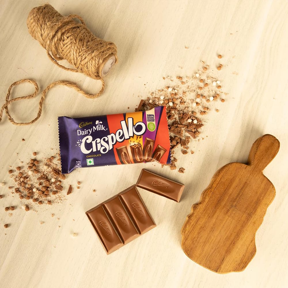 Crispello is a finger format chocolate with light, crispy balls in the centre, covered with a thin layer of delicious Cadbury Dairy Milk. Take a bite of Cadbury Crispello to enjoy a crisp, novel eating experience. This chocolate bar is a perfect sweet to indulge in all alone or share as a chocolate gift pack on special occasions like birthdays and get-togethers.