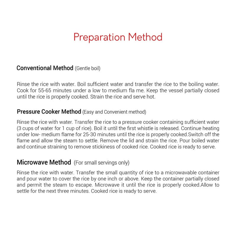 Nutrition values vary by variety and batch. Rice is primarily a source of carbohydrates and contains small amounts of protein. For detailed nutritional values, please refer to the pack label or nutrition facts provided by the manufacturer.