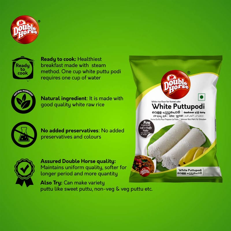 Double Horse White Puttu Podi delivers consistent quality and an authentic taste that helps you recreate traditional puttu at home with minimal effort.