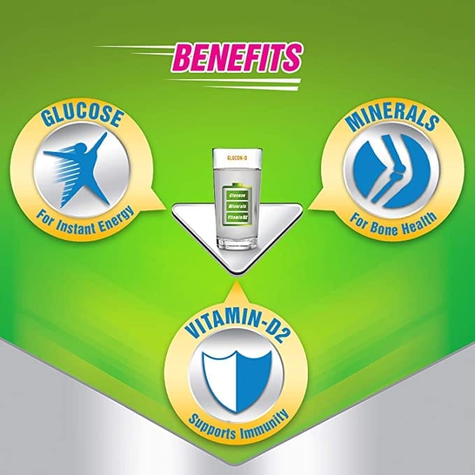 Summers can be daunting and especially when there's an enormous scorching sun always ready to drain out your energy and stop you from being the best of you. But thank god there is Glucon-D! Glucon-D contains glucose that helps replenish body glucose and fills you with the energy required to stay active. It is easily absorbed by the body, thus giving out an instant energy boost and refreshment. Enriched with Vitamin-C and Minerals, including Calcium and Phosphorus, this glucose drink helps charge you up to fight tiredness and promotes mental alertness. Add Glucon-D to a glass of water every day to provide growing active children the energy that keeps them going and adults, refreshment after a long day.